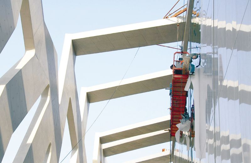 日前,施工人員在加緊安裝龍湖體育館外墻的幻彩鋁塑板。龍湖體育館的外觀造型采用透空大型群雕主題墻,既抽象又具體,既內(nèi)斂又張揚(yáng),通過(guò)構(gòu)件所產(chǎn)生的陰影投映在外墻面上,形成一個(gè)光影變化豐富的三維空間,動(dòng)感十足,給人以無(wú)限遐想。體育館建成后將成為我市標(biāo)志性建筑,提升了城市品位