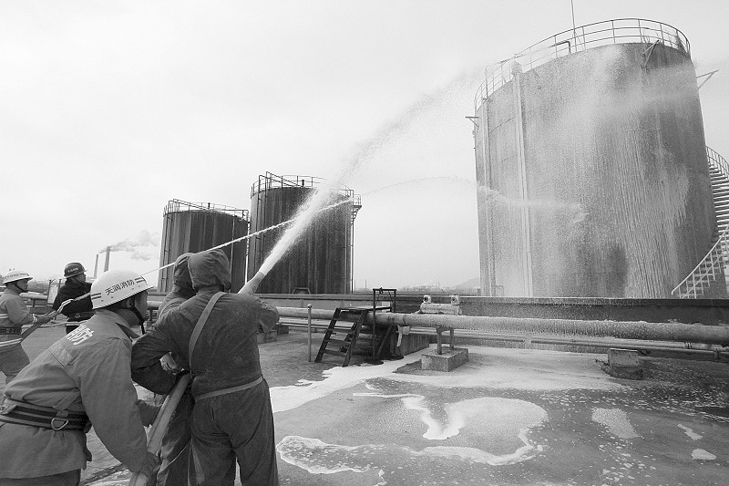 800立方米丙烯腈儲罐突發(fā)“泄漏”,一旦發(fā)生環(huán)境污染事故,將波及周邊大片生活區(qū),情況十分危急……昨天上午9時許,市環(huán)保局主辦的環(huán)境突發(fā)事件應(yīng)急演練在安徽天潤化學(xué)工業(yè)股份有限公司儲罐區(qū)舉行?!翱?!有人中毒倒地,罐體隨時有起火可能,請搶險救援小組、醫(yī)療救護小組、消防滅火小組支援!”伴隨著急促而有序的通話,企業(yè)負責(zé)人命令立即啟動專項環(huán)境應(yīng)急預(yù)案?!笆鹿省爆F(xiàn)場,兩名穿戴防護服、身背呼吸機的救援隊員沖鋒在前,成功關(guān)閉了發(fā)生泄漏的3號罐的外排閥門,并對損壞罐體進行搶修,防止更多化學(xué)氣體外泄;現(xiàn)場醫(yī)療人員抬起擔(dān)架沖進儲罐區(qū),抬送“傷員”到安全地帶,組織員工向上風(fēng)口有序撤離轉(zhuǎn)移;全副武裝的消防隊員手持水槍,噴涌而出的泡沫將3號罐體團團包裹,罐內(nèi)化學(xué)物質(zhì)得到降溫、稀釋。