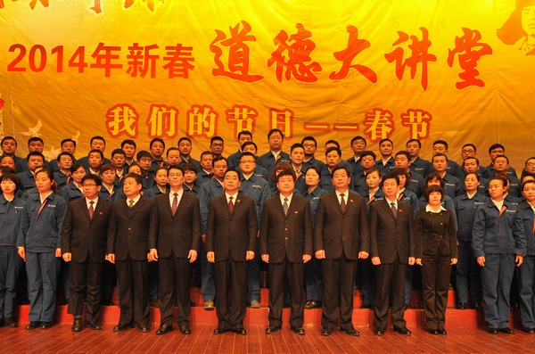講堂上,首先由中環(huán)水務(wù)黨政班子成員和營業(yè)所員工大合唱《公民道德歌》。隨后講故事環(huán)節(jié)播放了感動(dòng)中環(huán)水務(wù)的《天河應(yīng)急水源建設(shè)紀(jì)實(shí)》短片。在誦經(jīng)典環(huán)節(jié)中,誠信公司的《歡歡喜喜過大年》為我們講述了孝道,“小孝孝其身、中孝孝其心、大孝孝其志,至孝孝其慧”,生動(dòng)的闡述、富有激情的表演獲得了在場陣陣掌聲。在學(xué)模范環(huán)節(jié)中,中國好人獲得者蚌埠公交集團(tuán)的107路車駕駛員楊苗苗、三級(jí)警監(jiān)、迎淮社區(qū)片警單修河到會(huì),和與會(huì)人員暢談自己的內(nèi)心感受,使大家體會(huì)到只有踏實(shí)肯干、愛崗敬業(yè)才能贏得市民和社會(huì)的認(rèn)可,才能實(shí)現(xiàn)自我價(jià)值。
