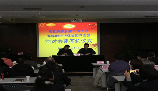 會上,蚌埠擔(dān)保集團黨支部與省市擔(dān)保雙方進行支部結(jié)對共建簽約。